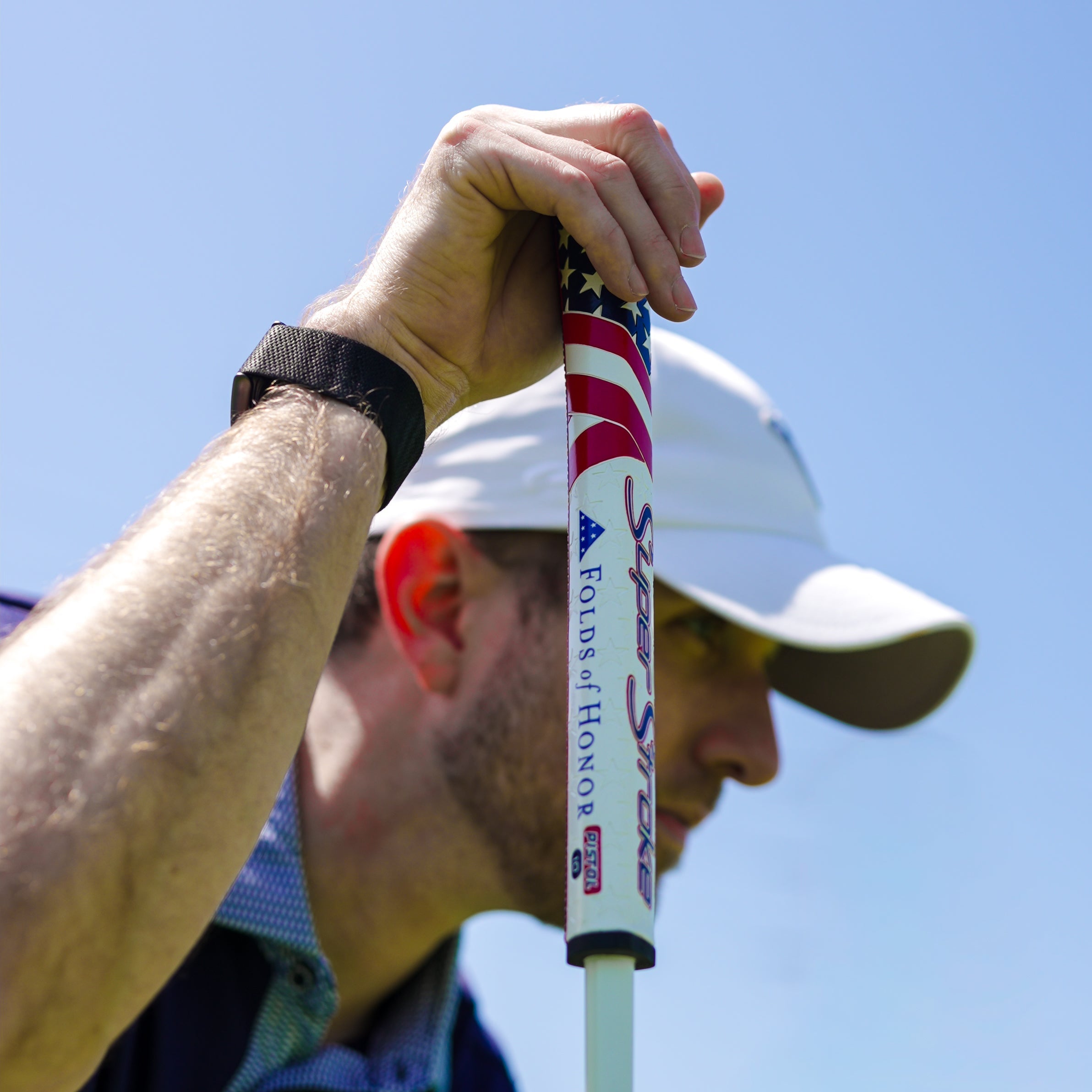 Meet the Folds of Honor Limited Edition putter grip. This design features bold red, white, and blue elements inspired by the American flag, celebrating 250 years of freedom while honoring the families who have sacrificed so much. The back of the grip highlights our patented SPYNE® technology with subtle star detailing woven into the texture.